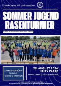 Nach vielen Jahren ohne eigenes Jugendturnier haben wir uns entschlossen, dieses wieder ins Leben zu rufen. Am Samstag, 29.08.2026 laden wir Minis und Jugendmannschaften E- bis C-Jugend zu uns nach Elmshorn ein. Gespielt wird auf Rasen auf dem EMTV-Platz. ... Weiterlesen →